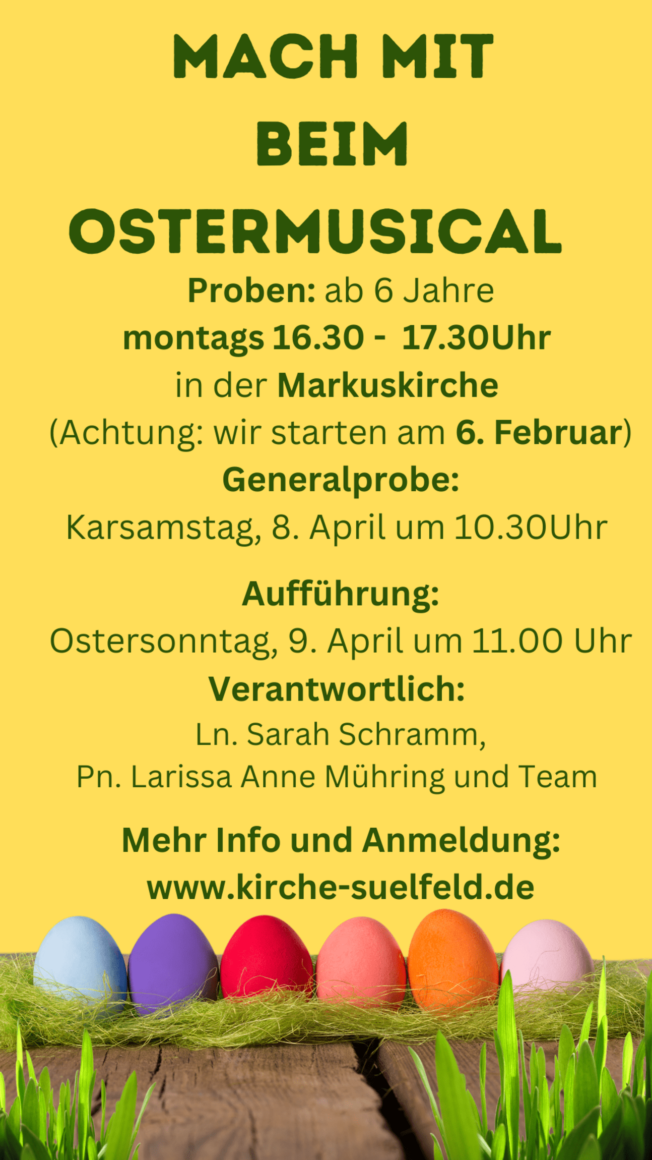 wir laden Euch sehr herzlich ein bei unserem Ostermusical mitzumachen!