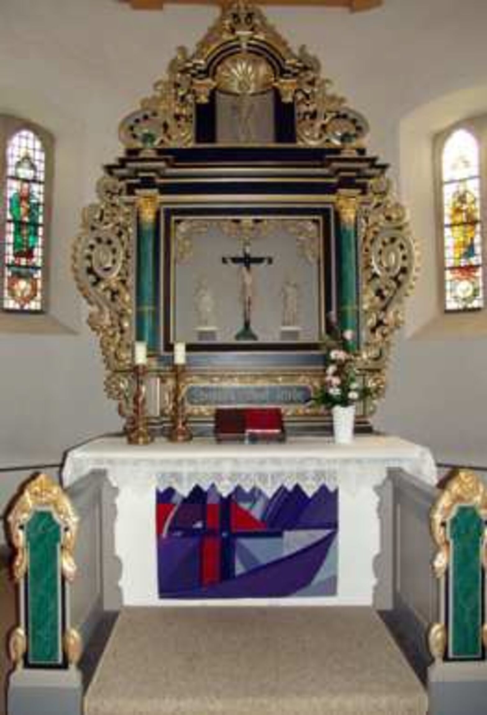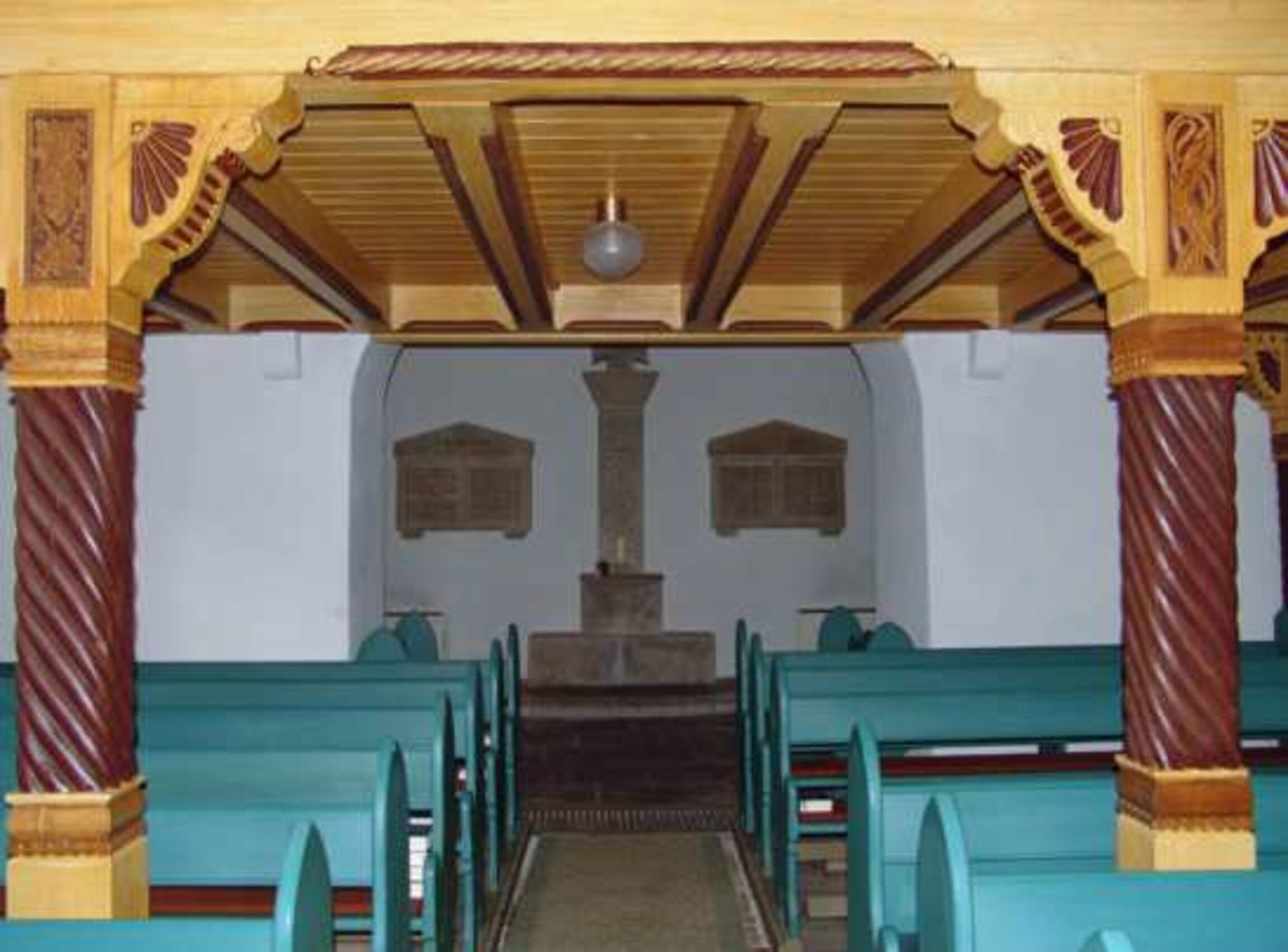 Die alte, eiserne Uhrschlagglocke von 1918 steht vor dem Gemeindehaus. Oberhalb der Glockenstube führen Stiegen und Leitern hoch hinauf bis an die Spitze des Turmhelmes. Der Turmhelm selbst kann von innen – aus verständlichen Gründen – nicht besichtigt werden. Wir können ihn jedoch von außen betrachten: