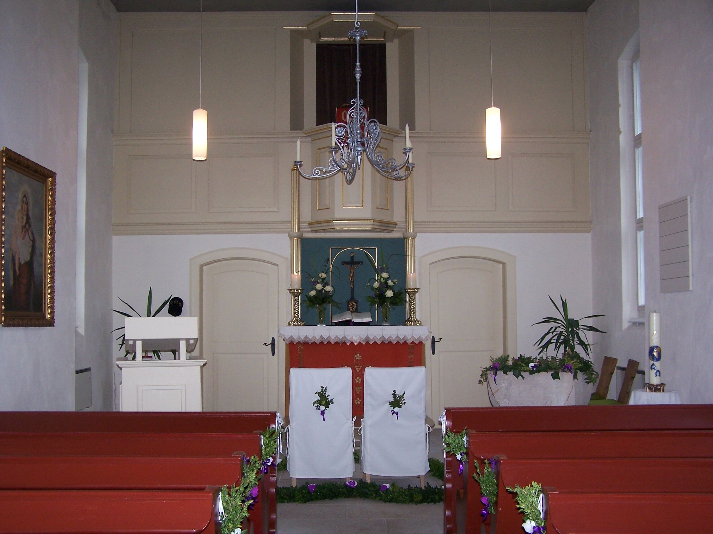 Im Inneren der Kirche gibt es eine Orgel: 1826 erbaut wurde sie 1912 gründlich überholt und 1939 durch einige Register in der damals aufgekommenen pneumatischen Technik erweitert. Diese erwies sich aber auf Dauer als nicht günstig, zumal sie mit dem alten Teil nicht harmonisierte. Orgelbaumeister Klein aus Oelde hat die Orgel gründlich restauriert und weitgehend im alten Zustand wiederhergestellt.